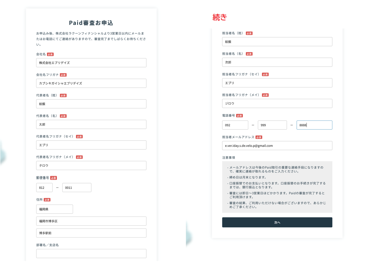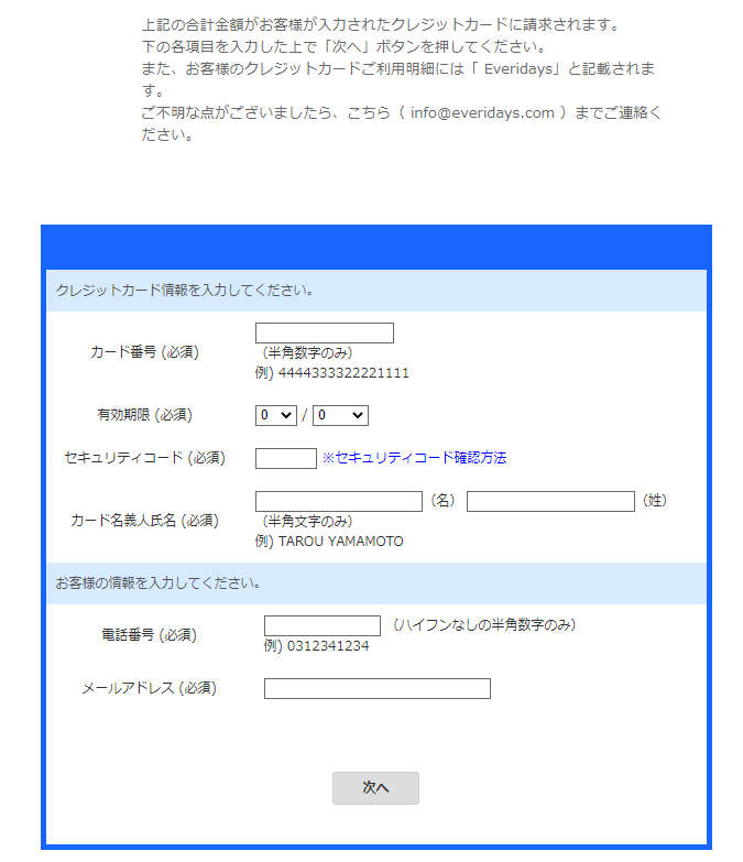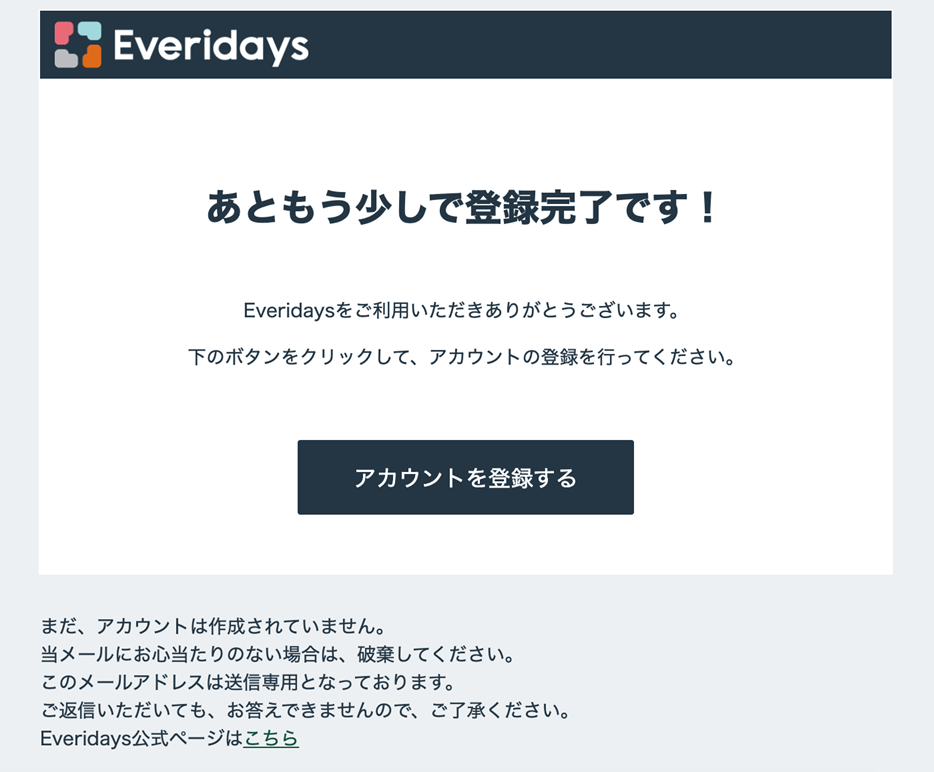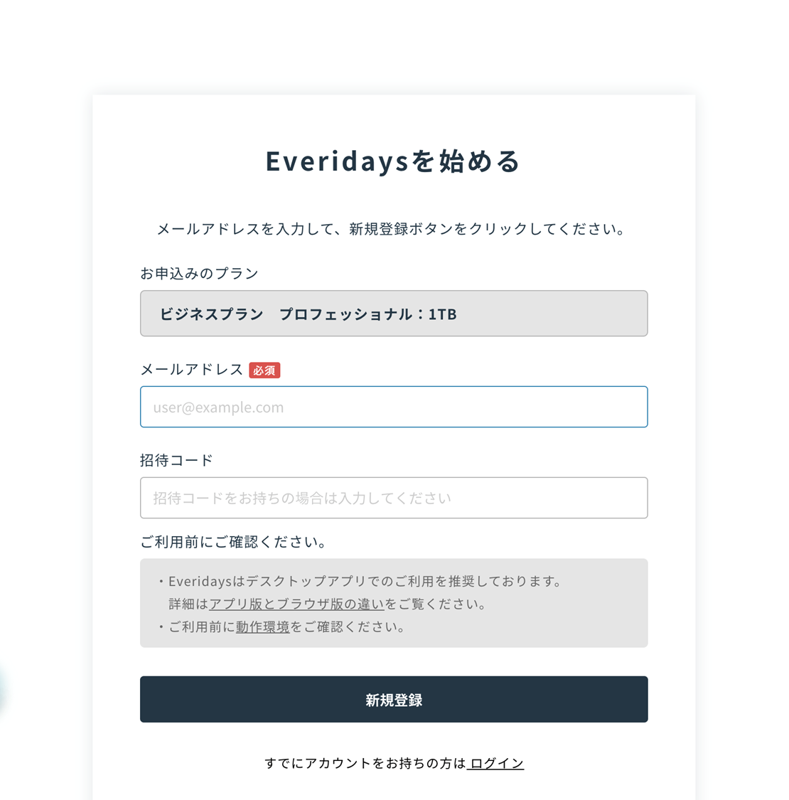 情報タイトルお申し込み・ご契約の方法URL 名1480記事質問お申し込み・ご契約の方法回答Everidays(エブリデイズ)への新規お申込み、ご登録、ご契約方法について記載しております。お申込み手続きはすべて公式サイト上で完結し、ご登録後すぐにEveridaysをご利用いただけます。 ※すでにフリープランにご登録されている方は、こちら の記事を参考にしてご登録ください。 目次 1.クレジットカードでお支払いの場合2.口座振替・銀行振込でお支払いの場合 クレジットカードでお支払いの場合 (1) Everidays公式サイトの料金ページより、ご希望のプランを選択し「お申し込み」をクリックします。 (2) ユーザ登録用のメールアドレスを入力し、「新規登録」をクリックします。 (3) 上記で入力したメールアドレス宛にEveridaysから登録用のメールが届きますので、そのメール内の「アカウント登録」をクリックします。 (4) Everidaysのご登録に必要な情報を入力してください。 (5) クレジットカード情報を入力してください。 (6) 以上で登録が完了です。 口座振替・銀行振込でお支払いの場合 (1) Everidays公式サイトの料金ページより、ご希望のプランを選択し「お申し込み」をクリックします。 (2) ユーザ登録用のメールアドレスを入力し、「新規登録」をクリックします。 (3) 上記で入力したメールアドレス宛にEveridaysから登録用のメールが届きますので、そのメール内の「アカウント登録」をクリックします。 (4) Everidaysのご登録に必要な情報を入力してください。 (5) Paidの登録に必要な情報を入力してください。 (6) 以上でお申込みは完了です。 口座振替のお客様は、Paidの審査が完了すると口座振替依頼書が郵送されますので、必要事項を入力しPaidまで返信をお願いします。
