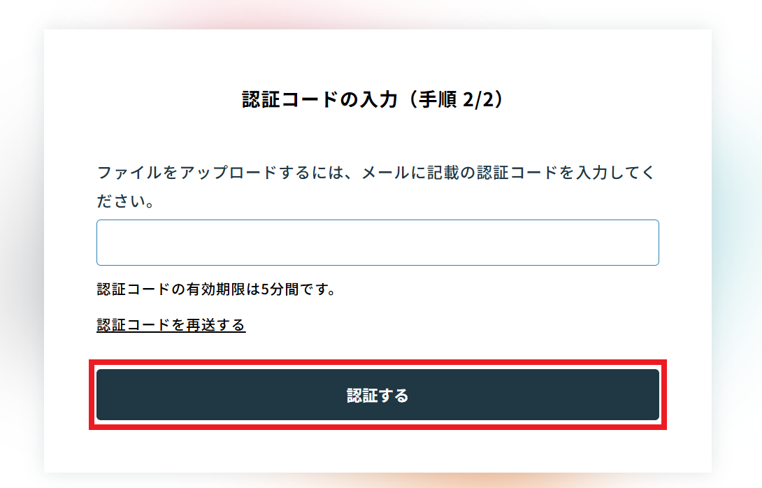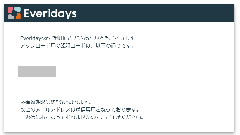 情報タイトルファイル受信機能でファイルをアップロードするURL 名2010記事質問ファイル受信機能でファイルをアップロードする回答Everidays(エブリデイズ)のファイル受信機能を使って作成されたサイトで、ファイルのアップロードを行う方法を記載しております。 受信機能の設定時に、パスワード設定されている場合は、アップロードサイトへのログイン時にパスワードの認証が必要となります。 目次 1.パスワード認証が必要な場合2.ワンタイムパスコード認証が必要な場合3.パスワード認証が不要な場合4.ファイルのアップロード方法 1.パスワード認証が必要な場合 (1) 「アップロードURL」にアクセスするとログイン画面が表示されます。 ・「お名前」項目に、アップロードする方の氏名を入力します。 ・「パスワード」項目に、ご案内があったパスワードを入力します。 ・「アップロードページへ」ボタンをクリックします。 このまま4.ファイルのアップロード方法へお進みください。 2.ワンタイムパスコード認証が必要な場合 (1) 「ダウンロードURL」にアクセスするとログイン画面が表示されます。 ・「メールアドレス」項目に、受信者のメールアドレスを入力します。 ・「お名前/会社名(組織名)」項目に、アップロードする方のお名前/会社名(組織名)を入力します。 (2) 入力したメールアドレス宛に「件名:【Everidays】アップロード用の認証コードについて」 のメールが送信されます。 メールの本文に認証コードが記載されています。 (3)「ファイルをアップロードするには、メールに記載の認証コードを入力してください。」項目に、認証コードを入力します。 ・「認証する」ボタンをクリックします。 3.パスワード認証が不要な場合 (1) 「アップロードURL」にアクセスするとログイン画面が表示されます。 ・「お名前」項目に、ダウンロードする方の氏名を入力します。 ・「アップロードページへ」ボタンをクリックします。 4.ファイルのアップロード方法 (1) ファイルアップロードのページが表示されます。 「ファイルを追加する」をクリックし、アップロードするファイルを登録してください。 また、ファイルをドラッグ&ドロップすることでも、ファイルを登録することが可能です。 アップロードするファイルを登録完了後、「アップロード」ボタンをクリックしていただき、ファイルをEveridaysへアップロードします。 ※有効期限を過ぎるとアップロードができませんのでご注意ください。