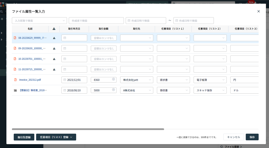 (2) 複数ファイルを一括で属性入力できる「属性一覧入力機能」を追加しました。